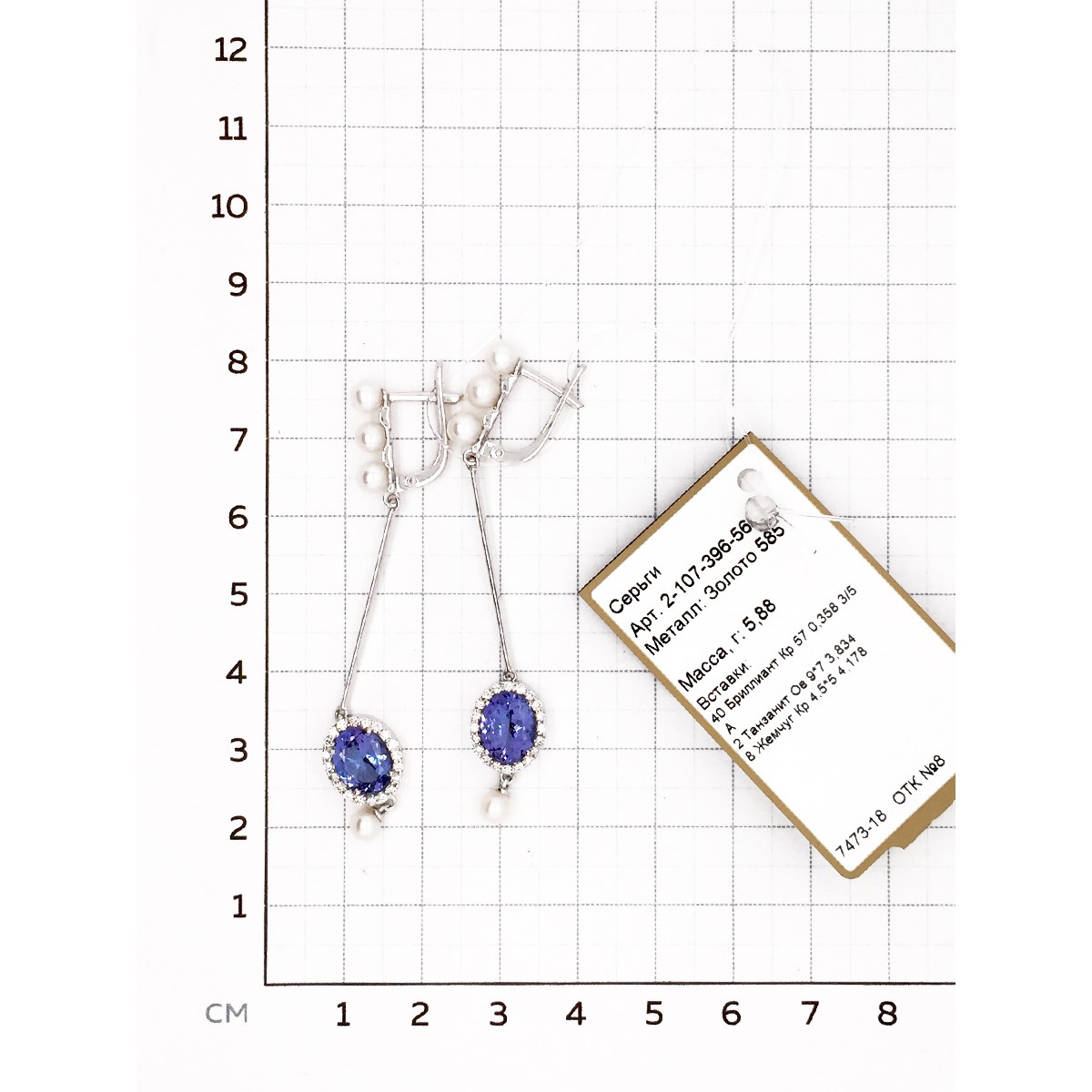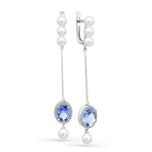 Серьги со вставками жемчуг культивированный, танзанит, бриллиант арт. 2-107-396-56