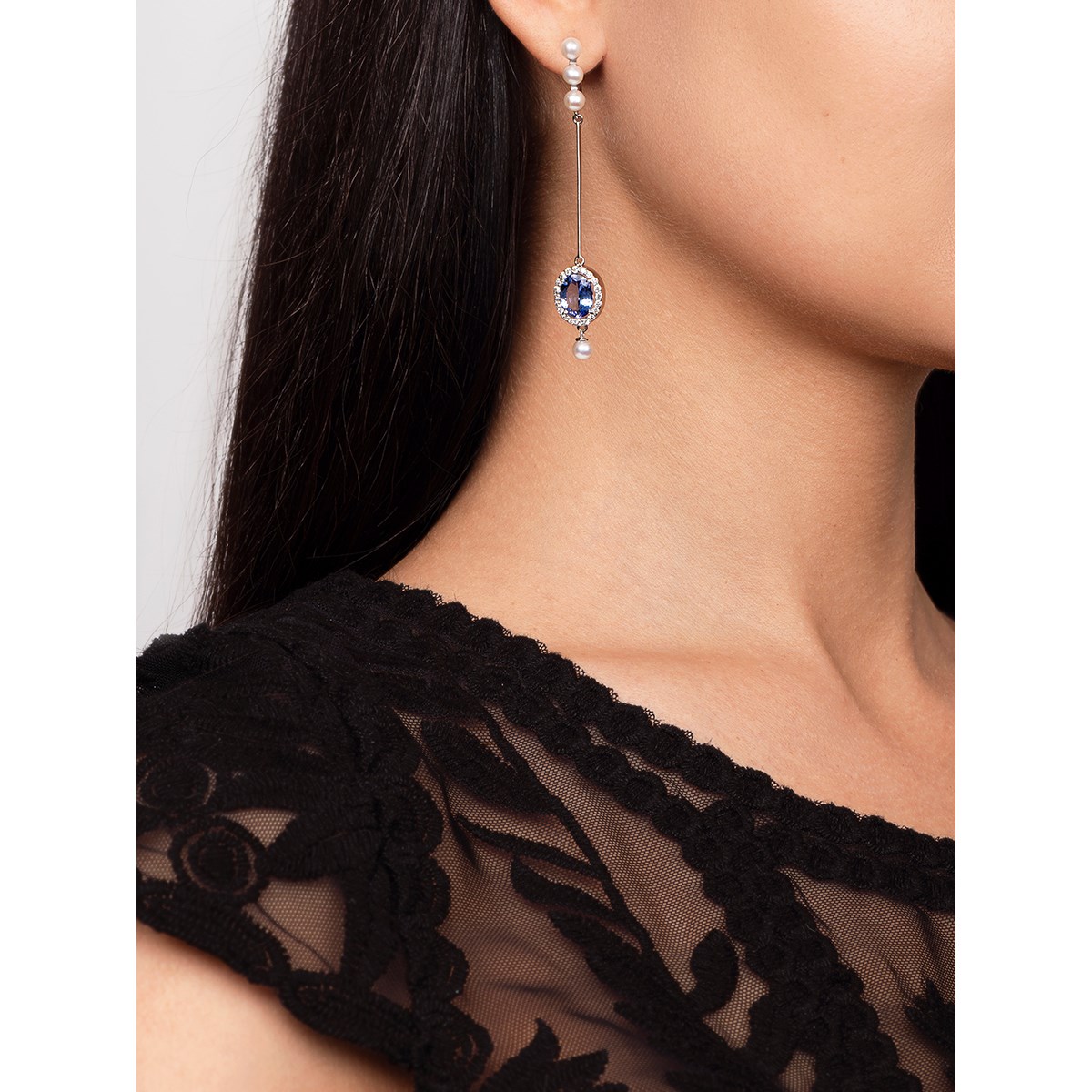 Серьги со вставками жемчуг культивированный, танзанит, бриллиант