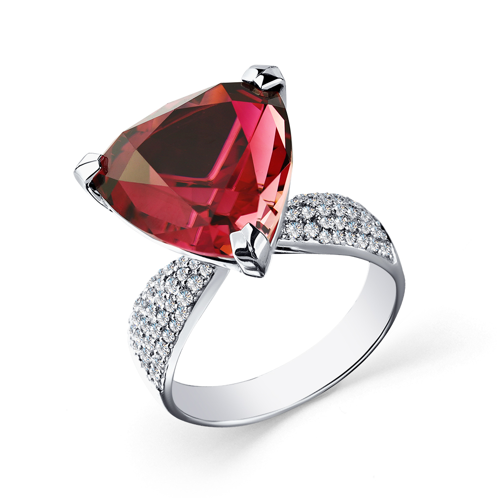 Кольцо белое золото 585 пробы со вставками рубеллит, бриллиант