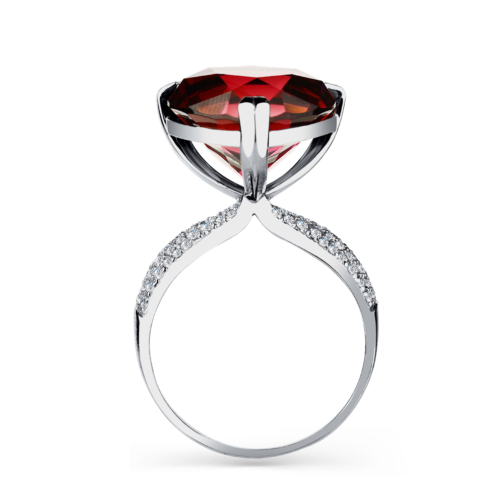Кольцо белое золото 585 пробы со вставками рубеллит, бриллиант арт. 1-207744-00-32