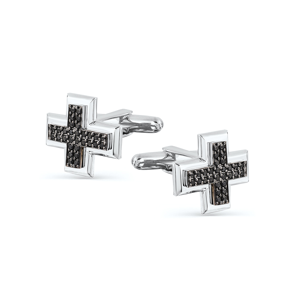Запонки белое золото 585 пробы со вставкой бриллиант черный
