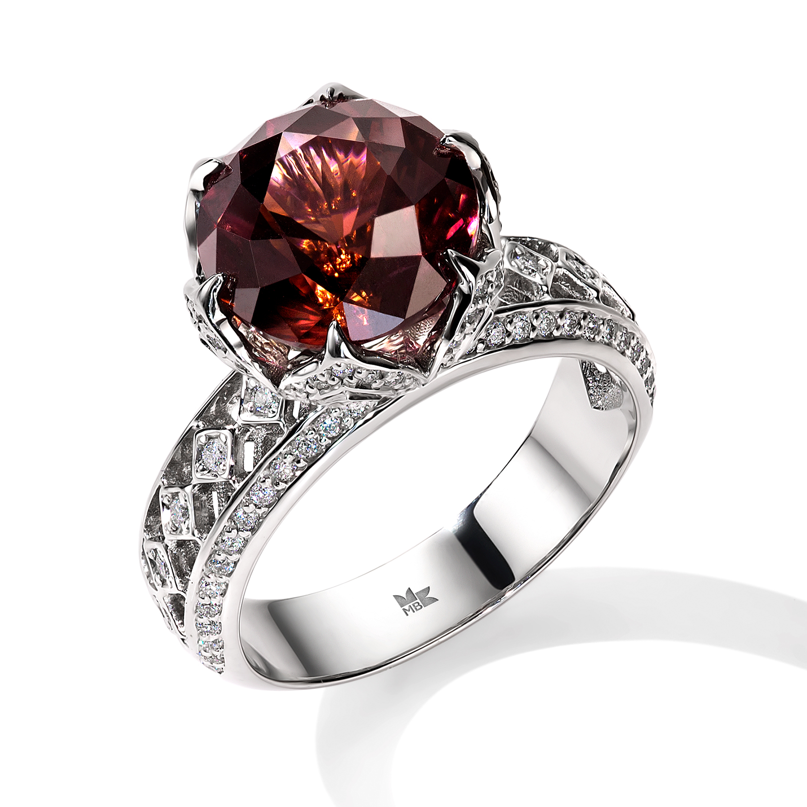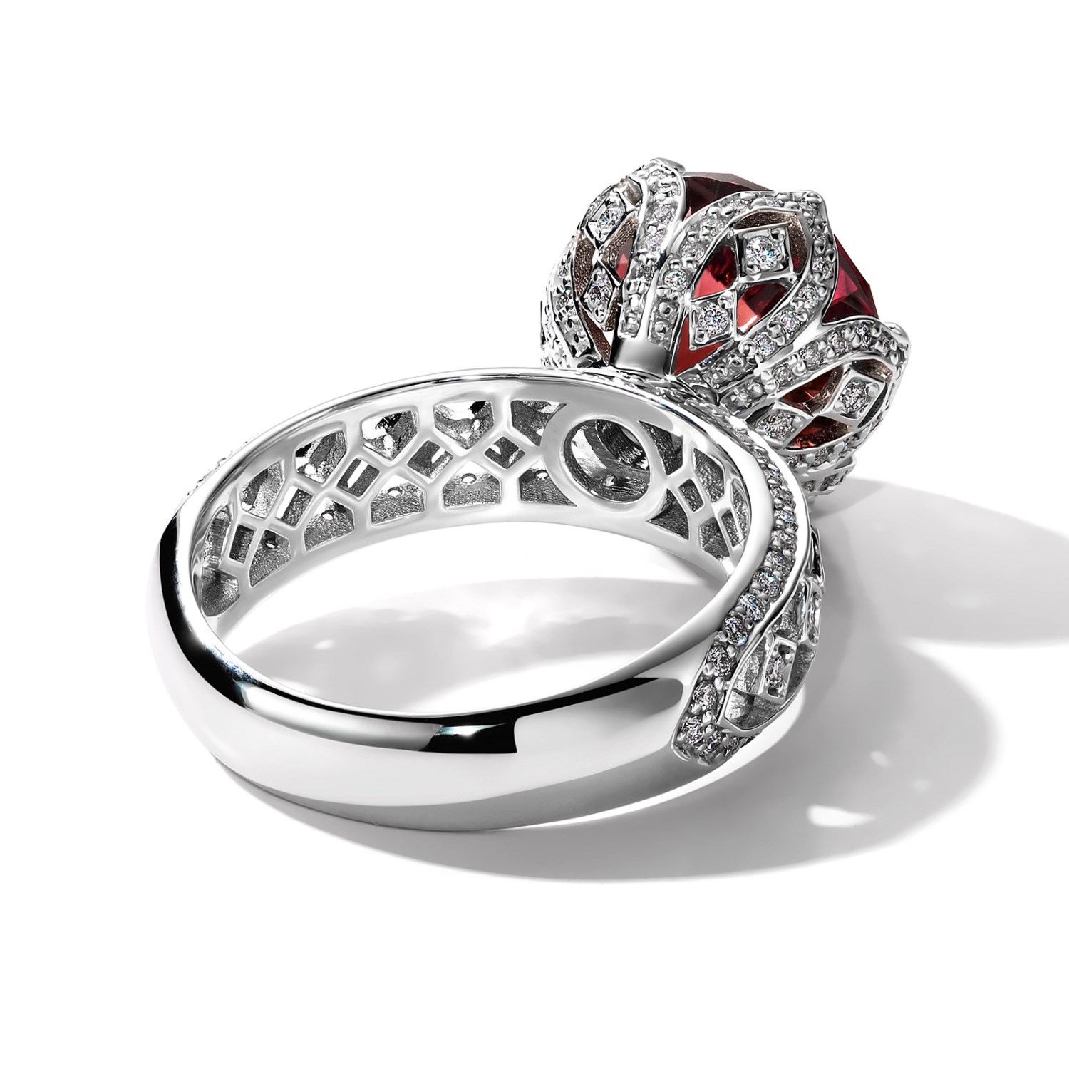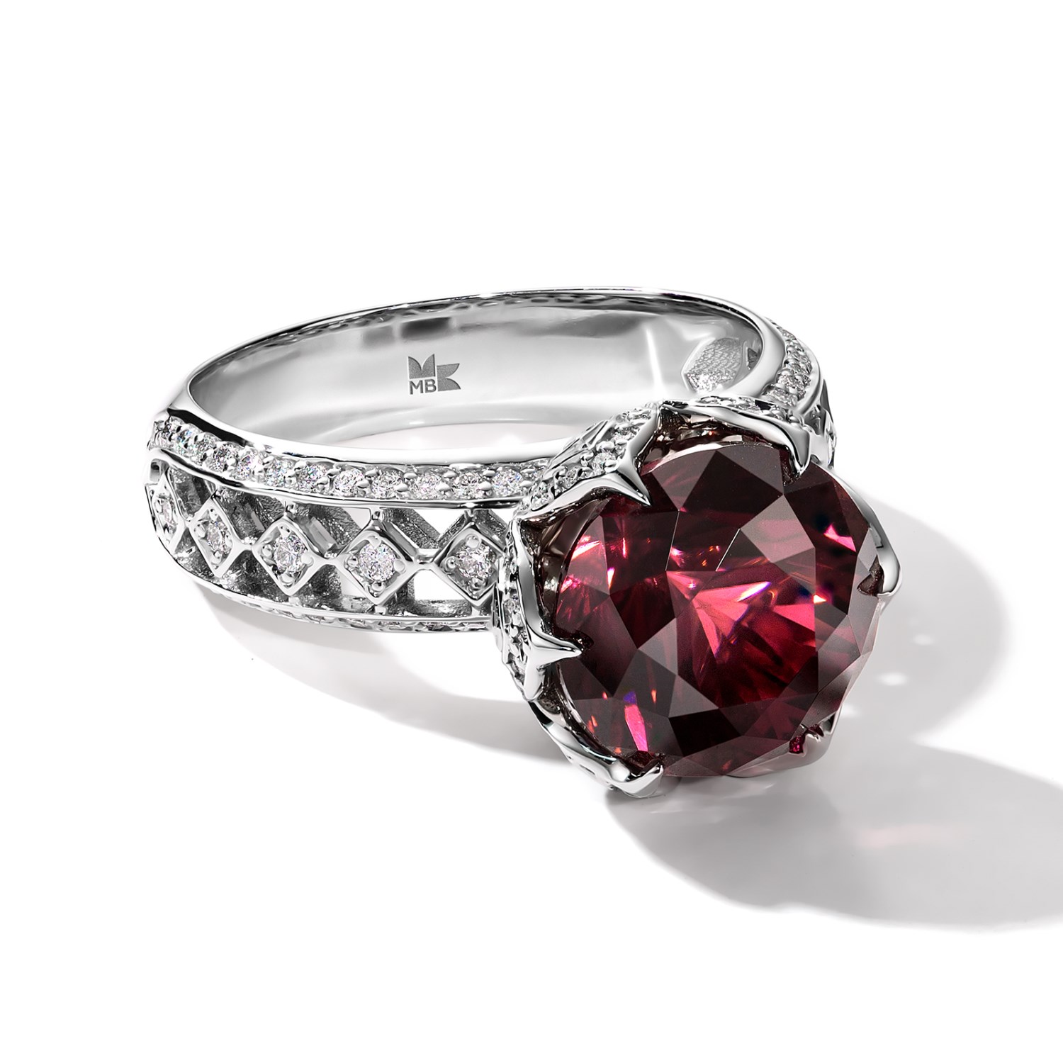 Кольцо белое золото 585 пробы со вставками рубеллит, бриллиант