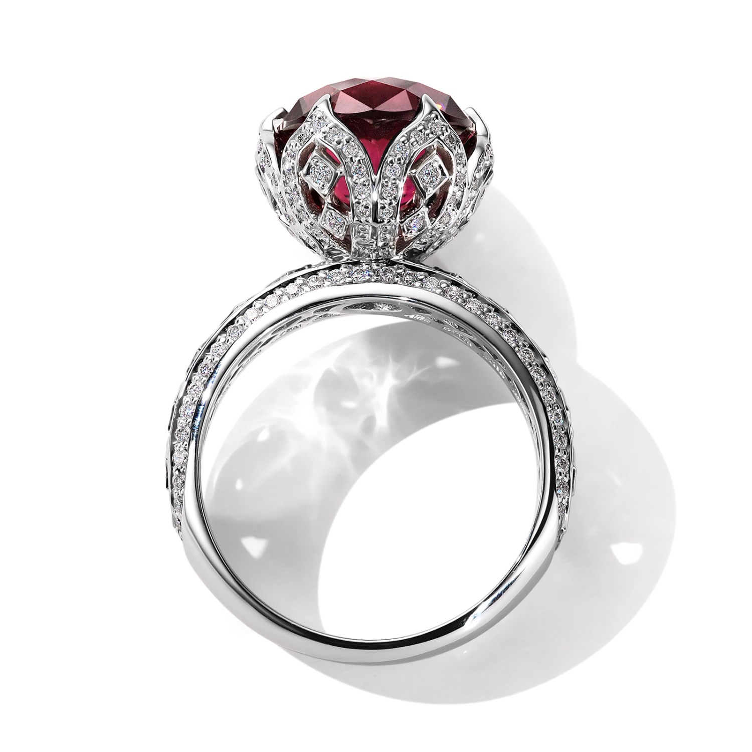 Кольцо белое золото 585 пробы со вставками рубеллит, бриллиант арт. 1-208633-00-32