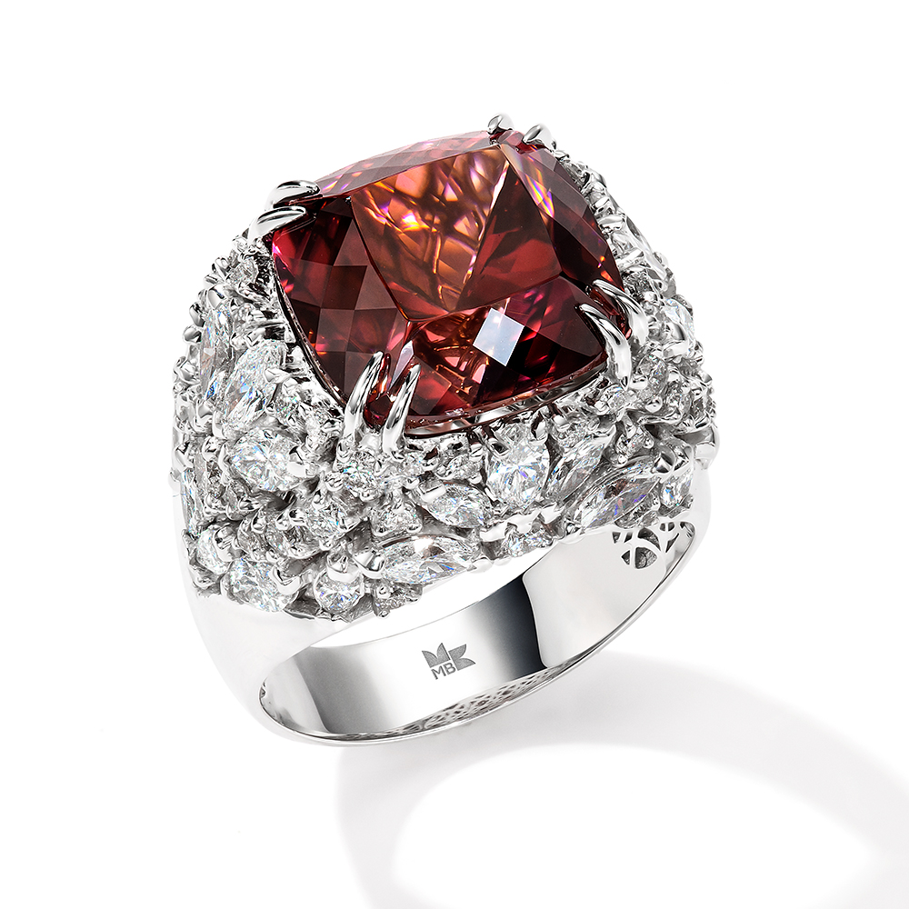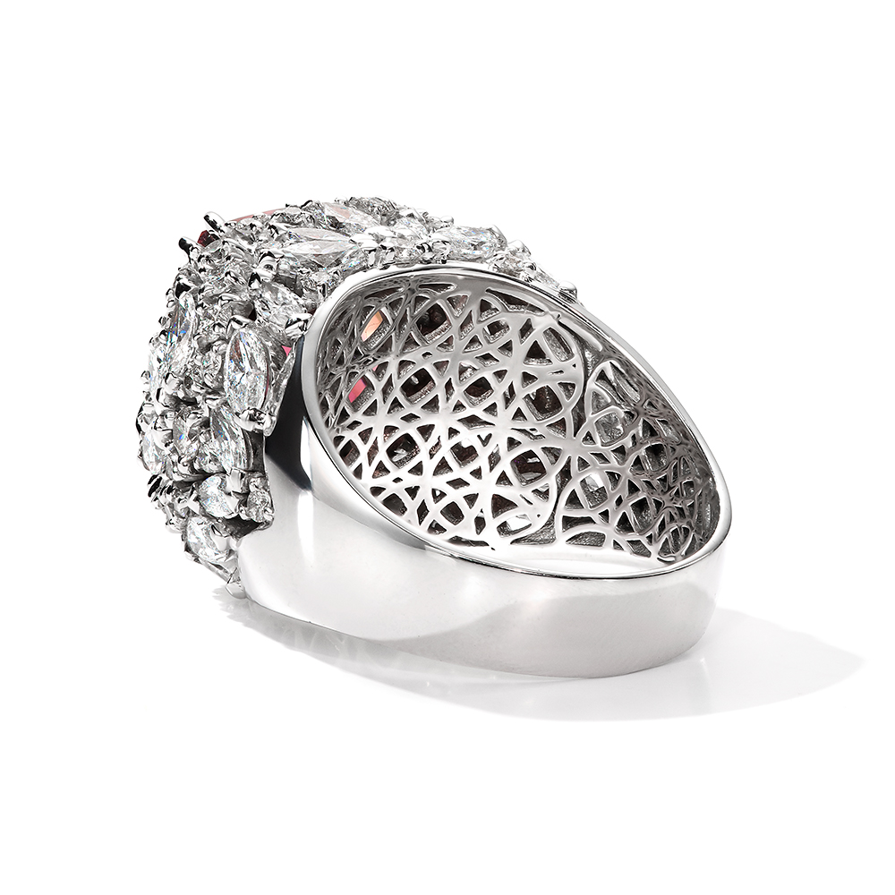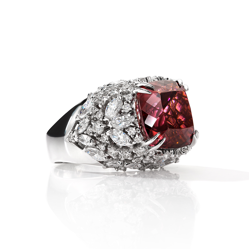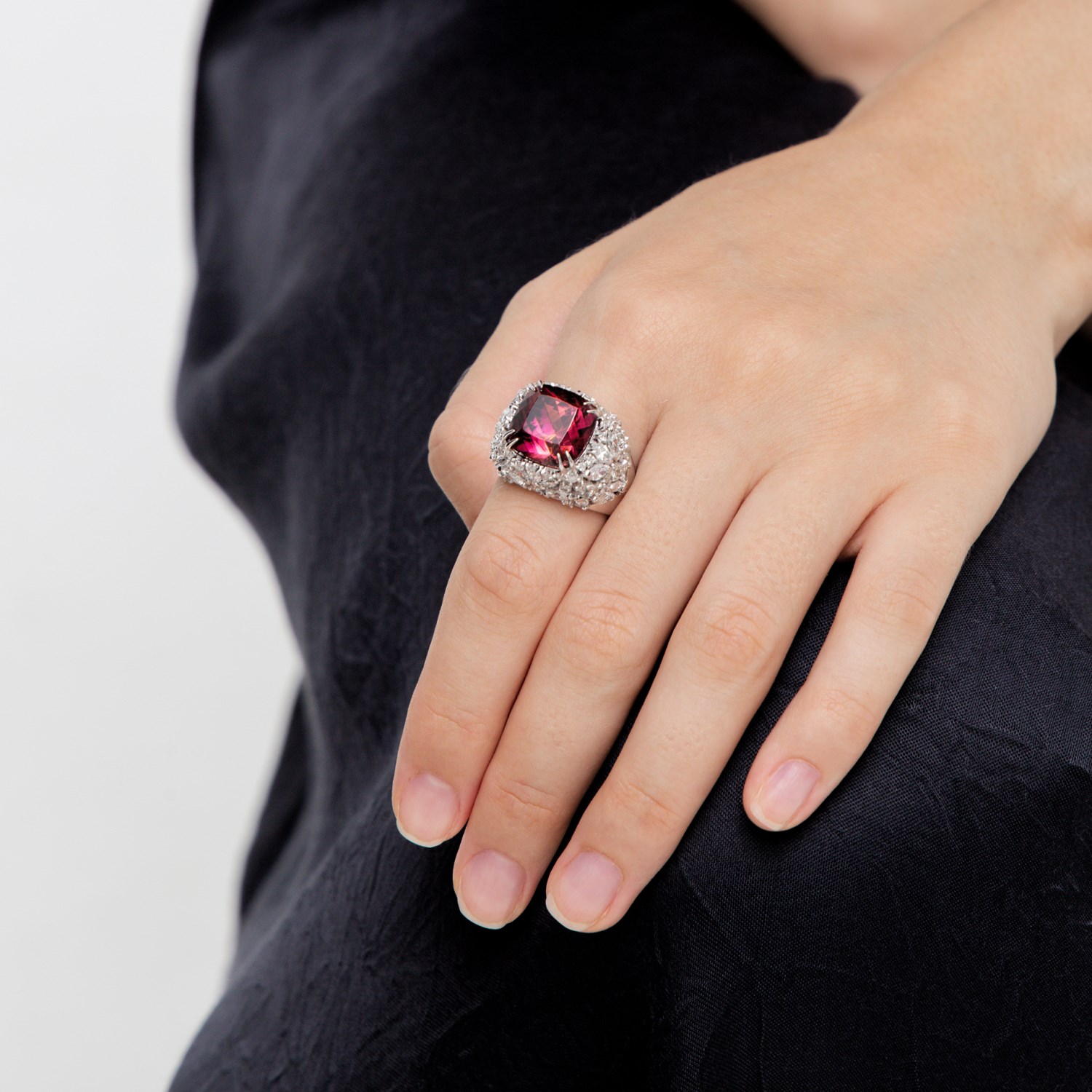 Кольцо белое золото 585 пробы со вставками рубеллит, бриллиант