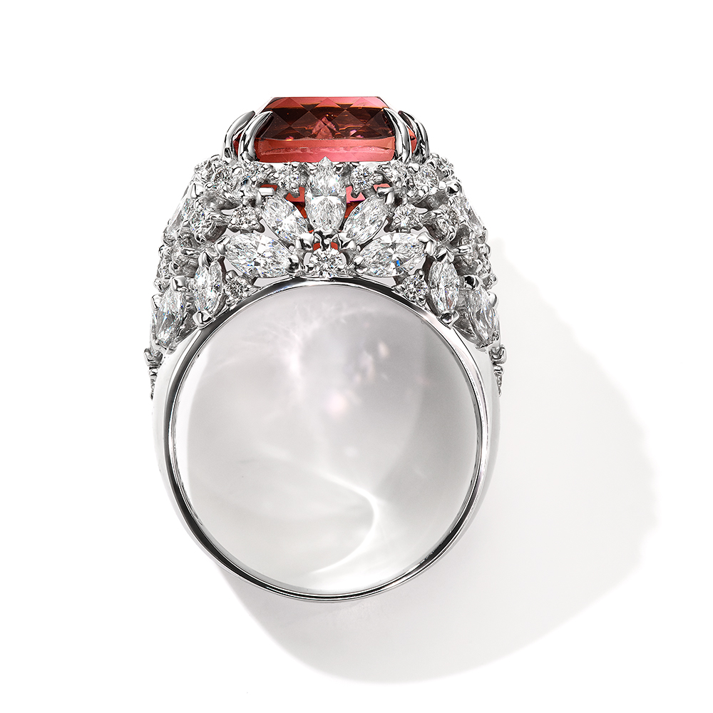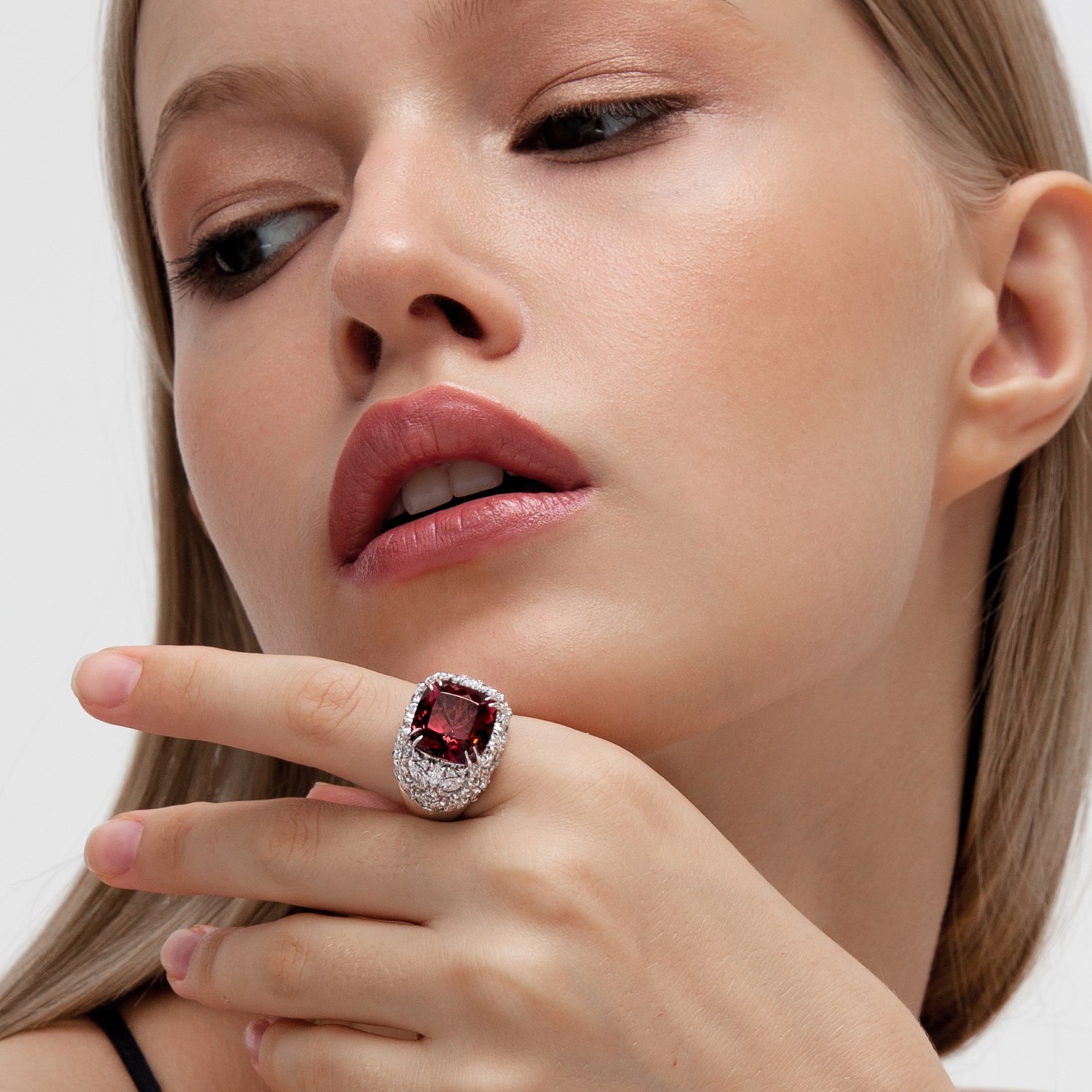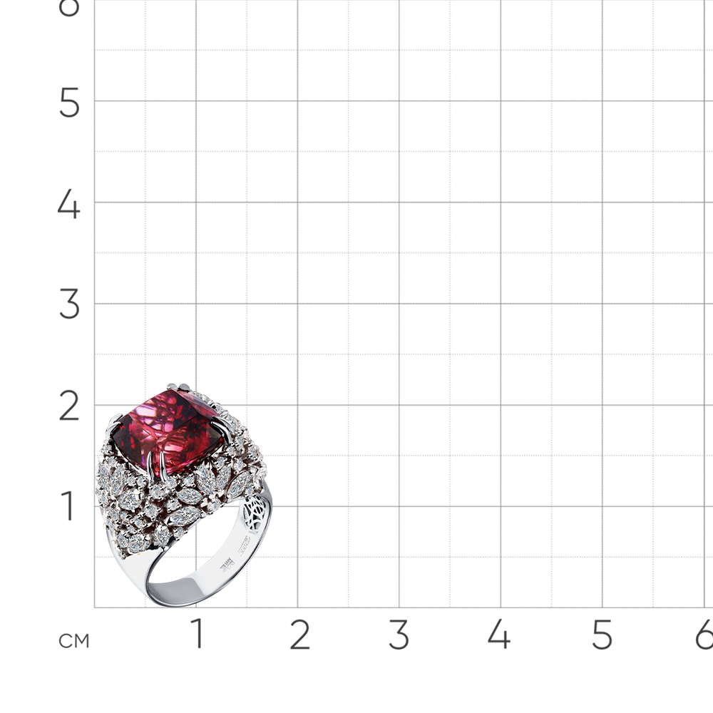 Кольцо белое золото 585 пробы со вставками рубеллит, бриллиант арт. 1-208677-00-32
