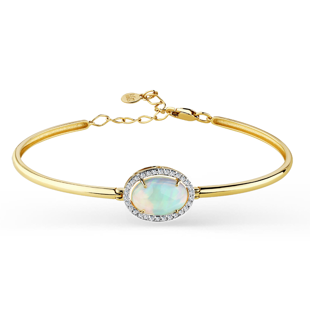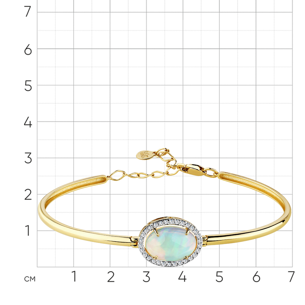 Браслет жёлтое золото 585 пробы со вставками опал, бриллиант арт. 10-320430-00-36
