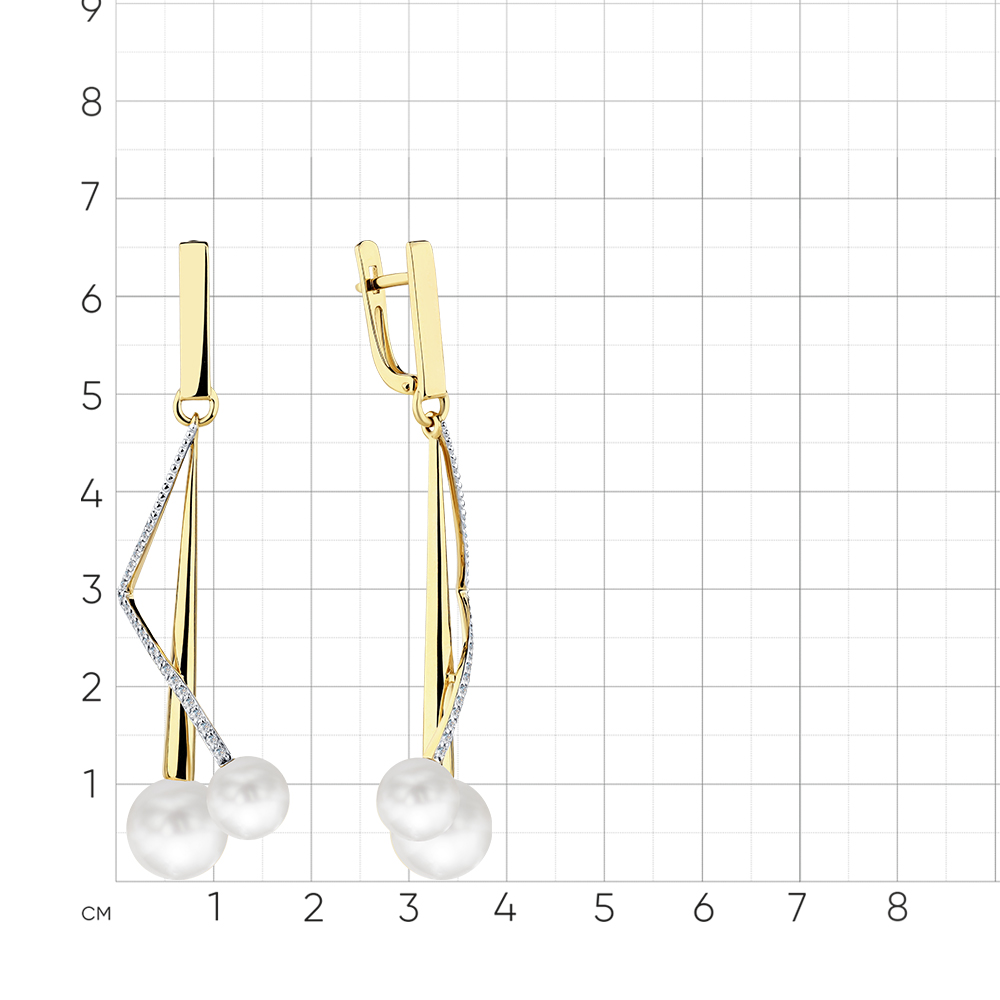 Серьги жёлтое золото 585 пробы со вставками жемчуг культивированный, бриллиант арт. 2-308706-00-28