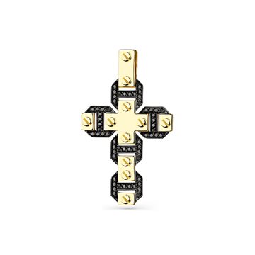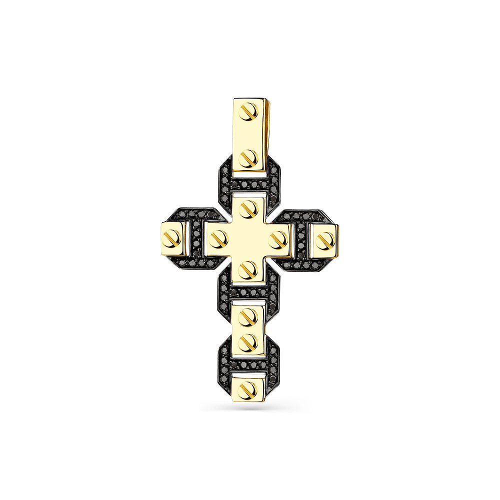 Крест жёлтое золото 585 пробы со вставкой бриллиант черный арт. 8-380438-00-48