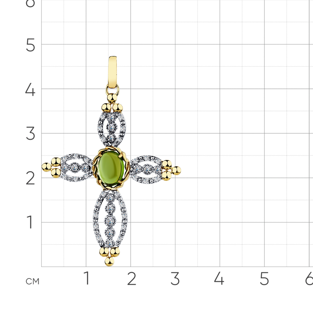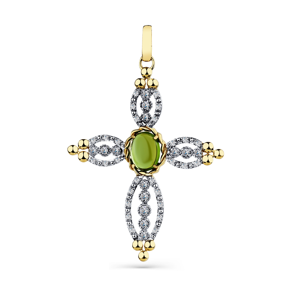Крест жёлтое золото 585 пробы со вставками турмалин, бриллиант арт. 8-380422-00-60