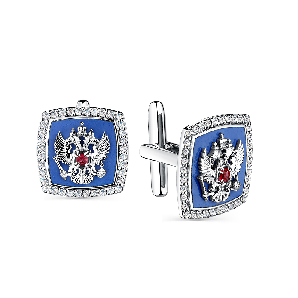 Запонки со вставками бриллиант, эмаль, рубин н. арт. 4-240023-00-03