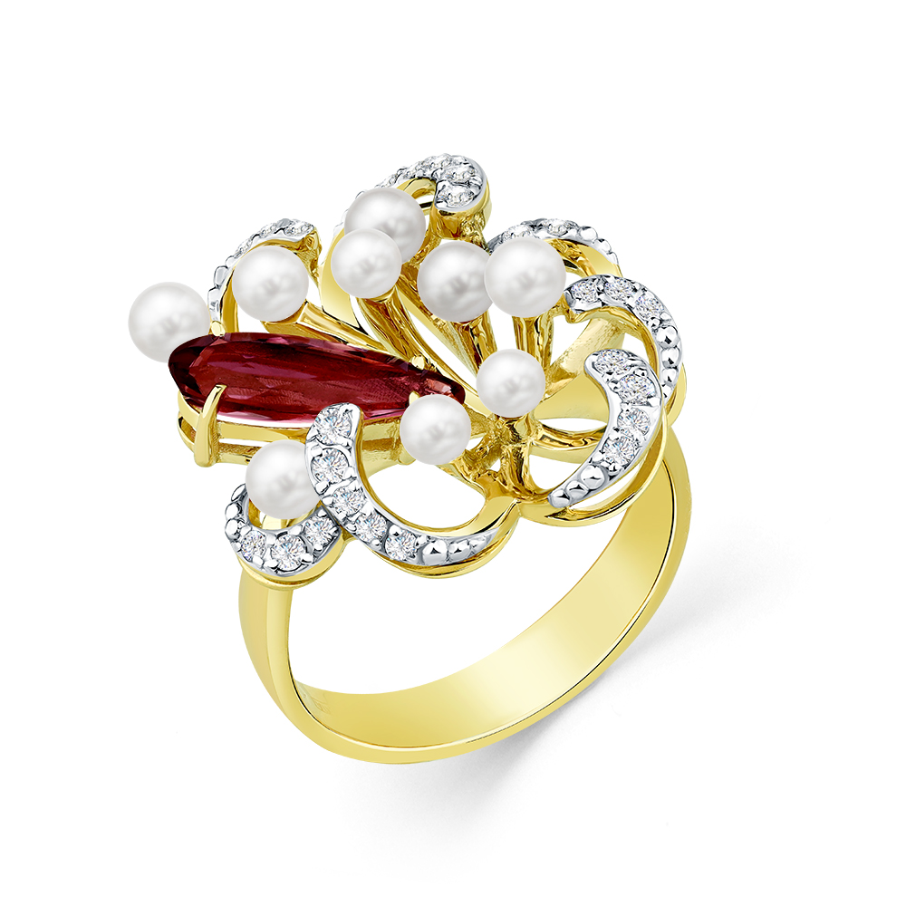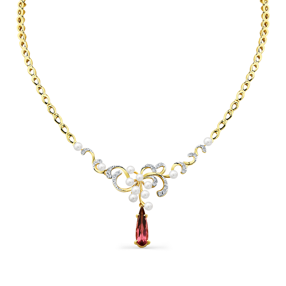 Колье со вставками жемчуг культивированный, рубеллит, бриллиант арт. 6-360611-00-32