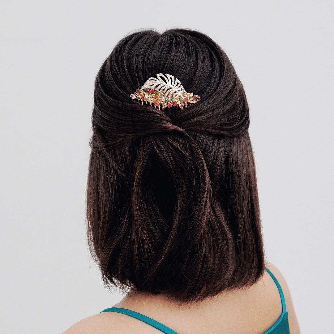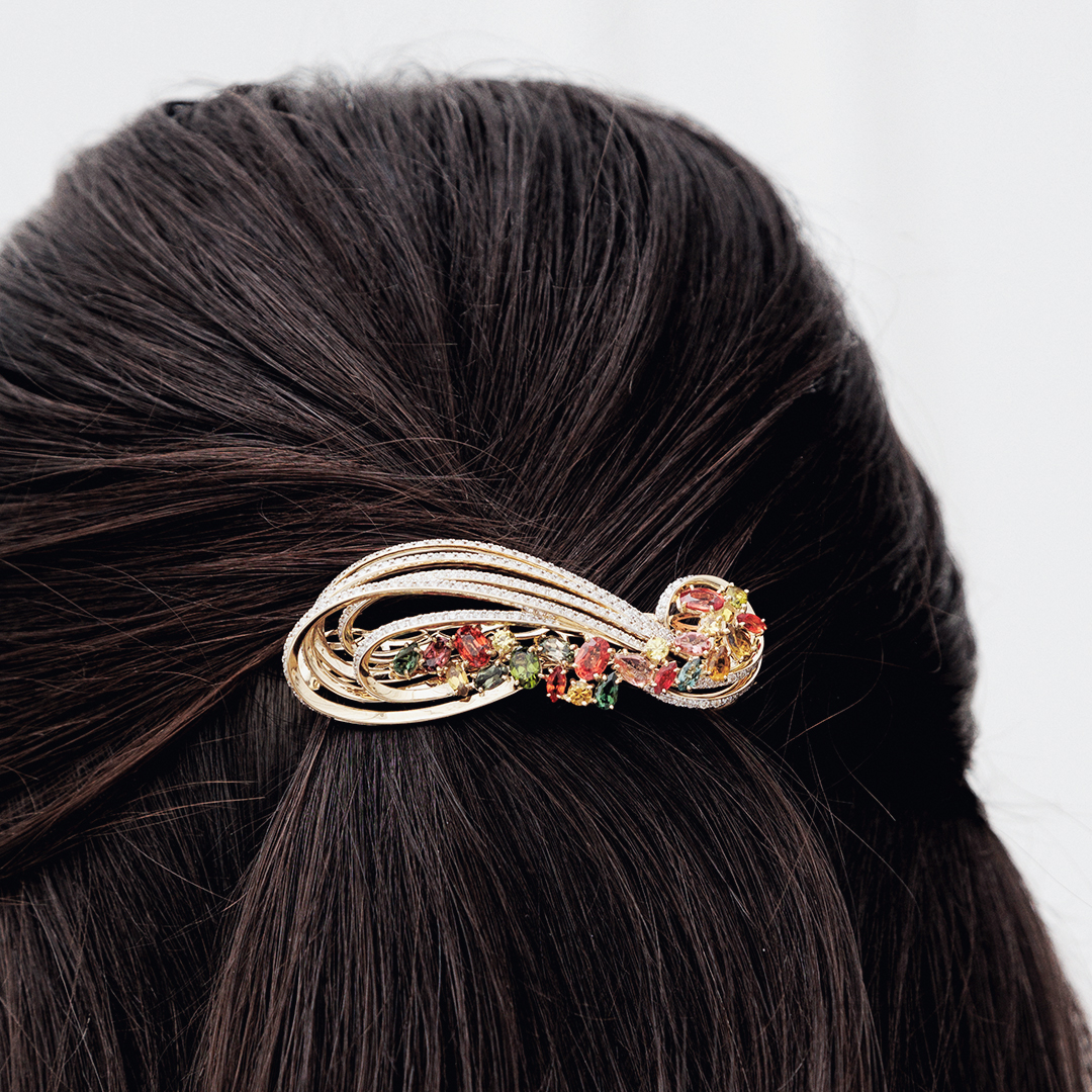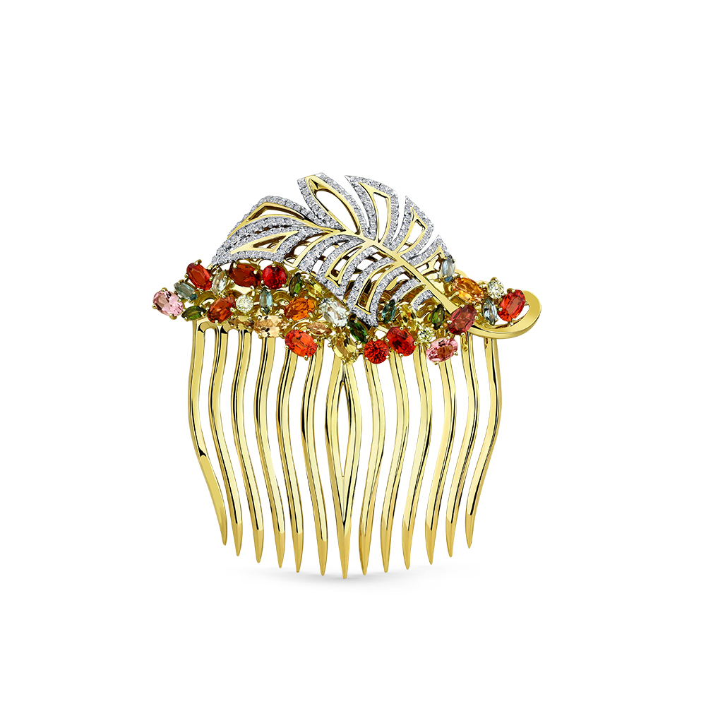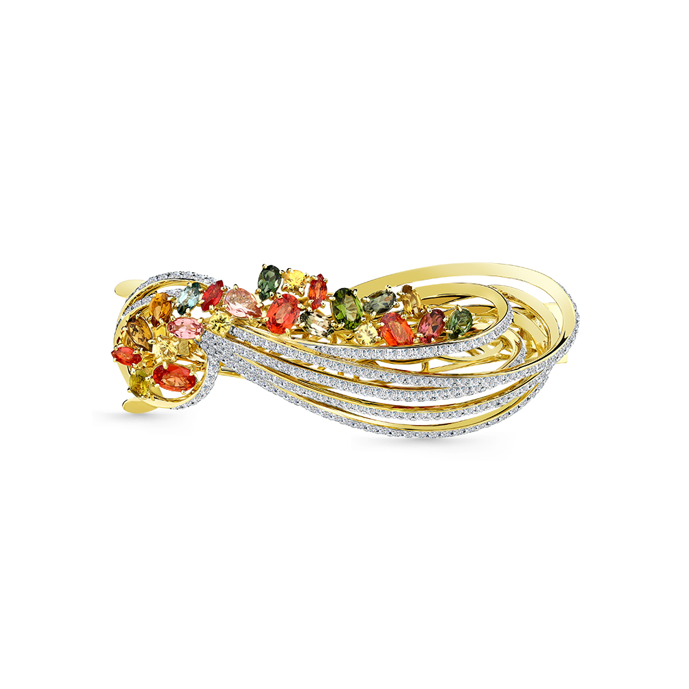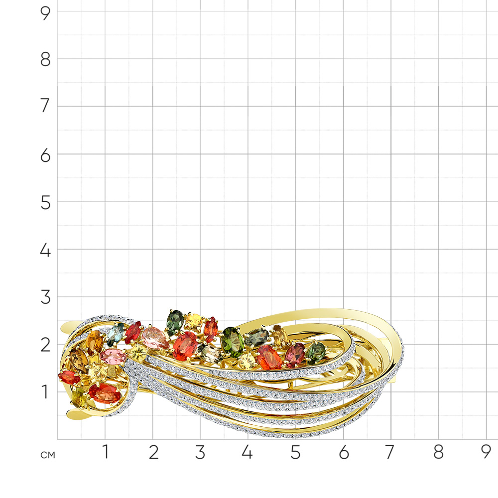 Сувенир жёлтое золото 585 пробы со вставками бриллиант, сапфир облагороженный оранжевый, турмалин мультиколор, сапфир облагороженный желтый арт. 13-313006-00-55