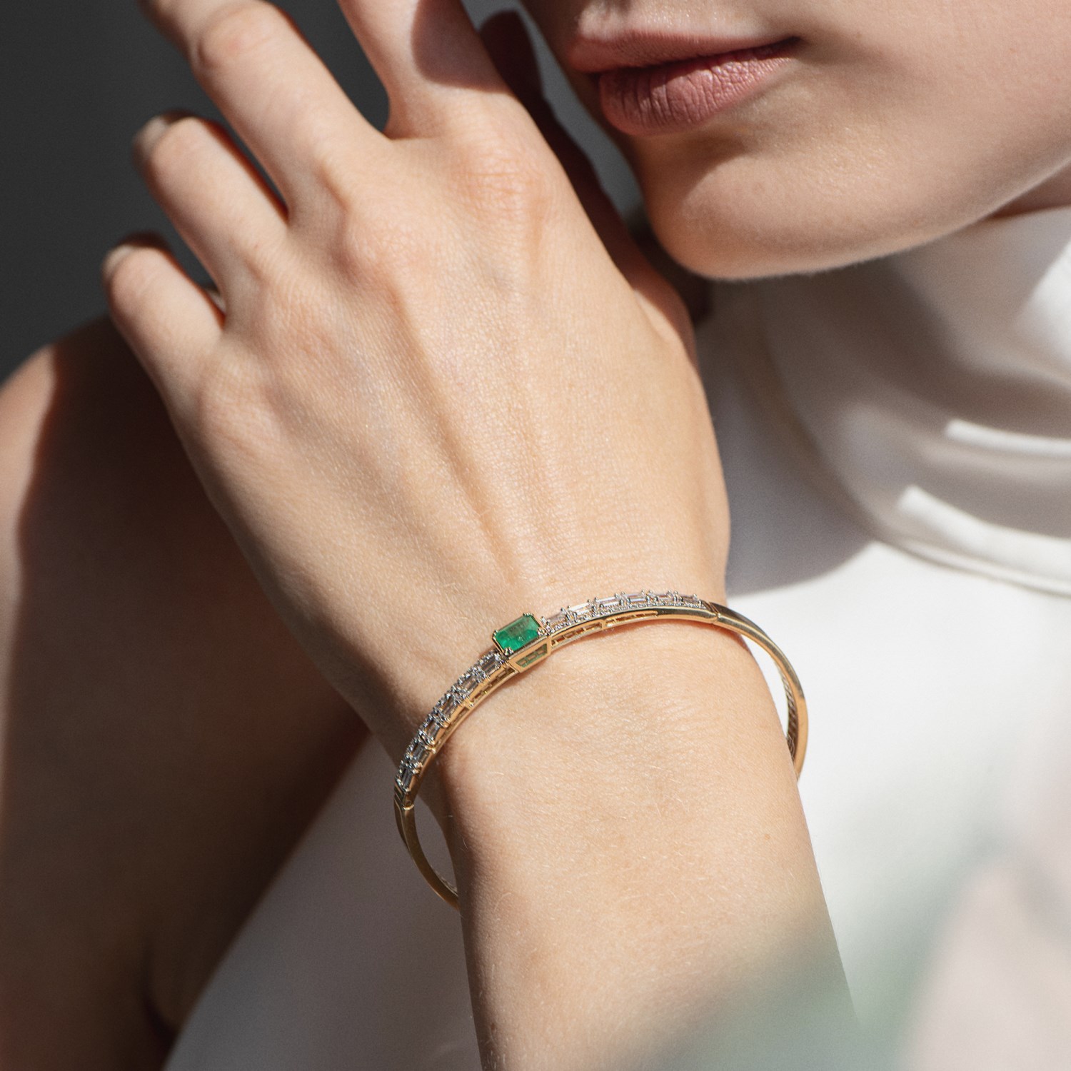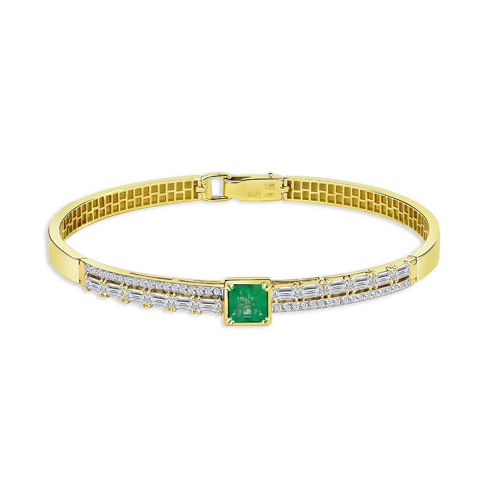 Браслет жёлтое золото 585 пробы со вставками изумруд н., бриллиант арт. 10-320462-00-01