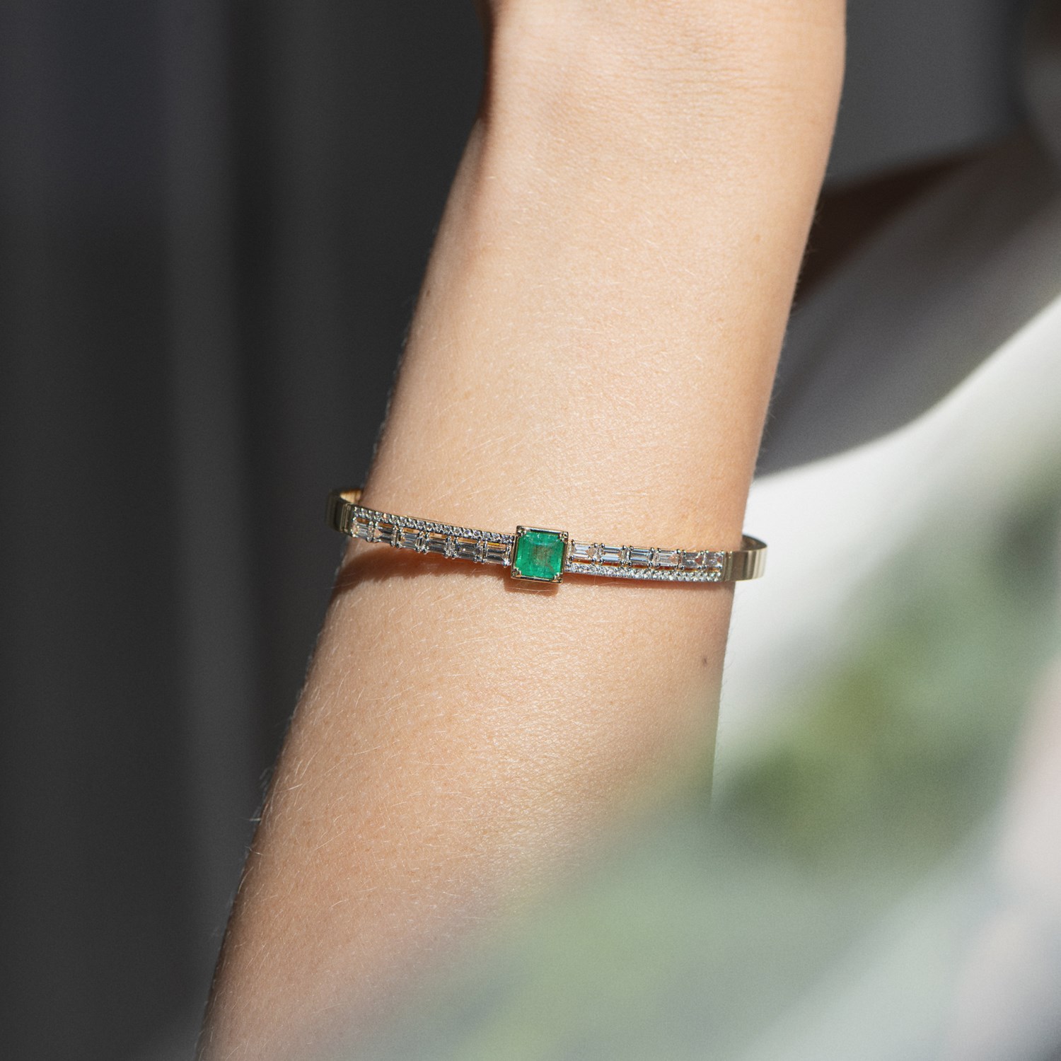 Браслет жёлтое золото 585 пробы со вставками изумруд н., бриллиант