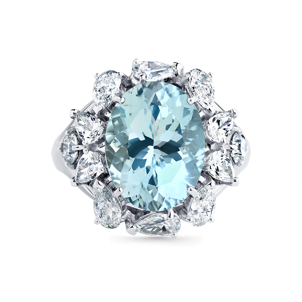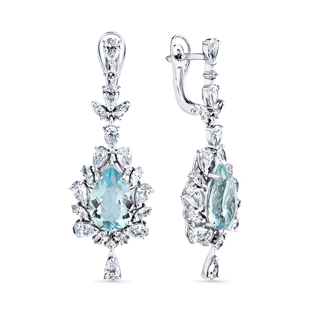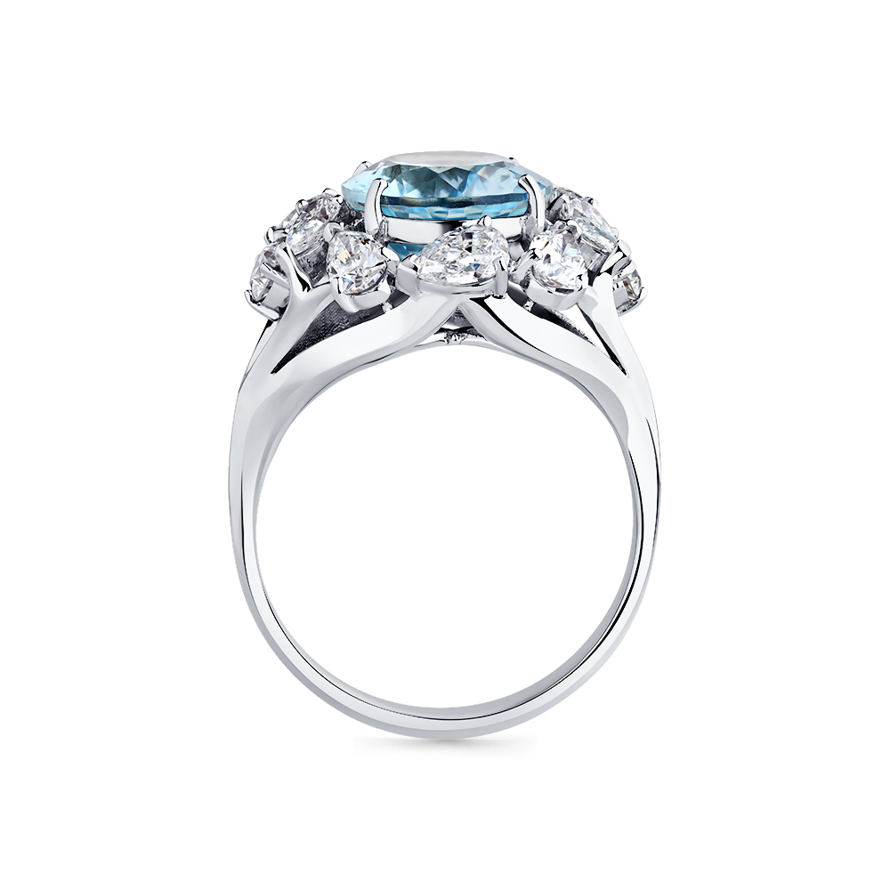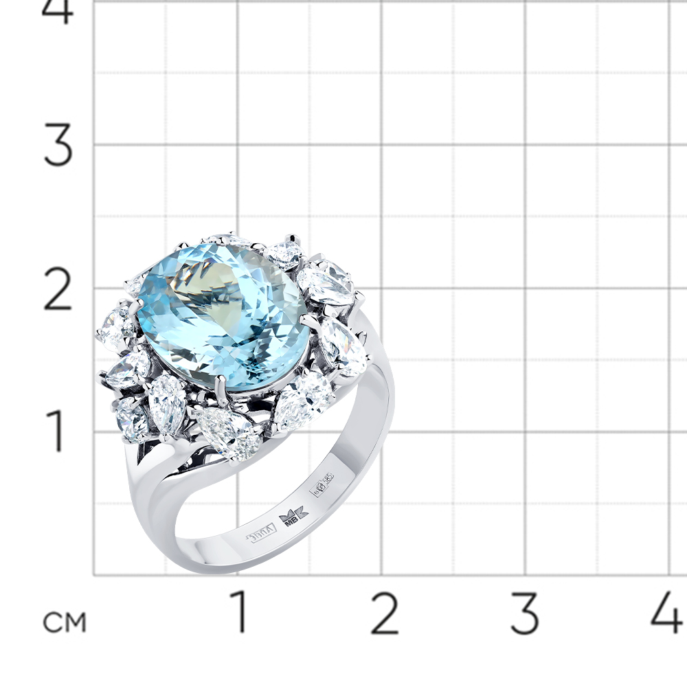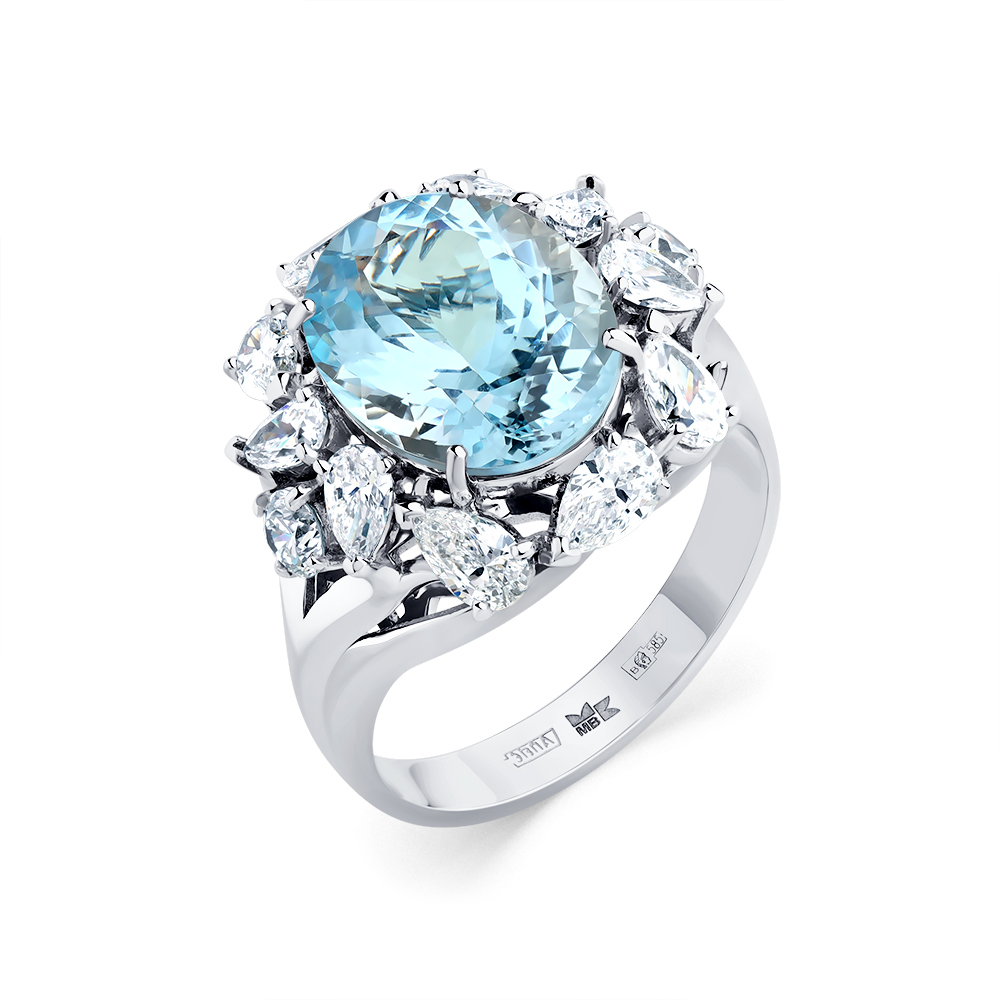 Кольцо белое золото 585 пробы со вставками аквамарин, бриллиант