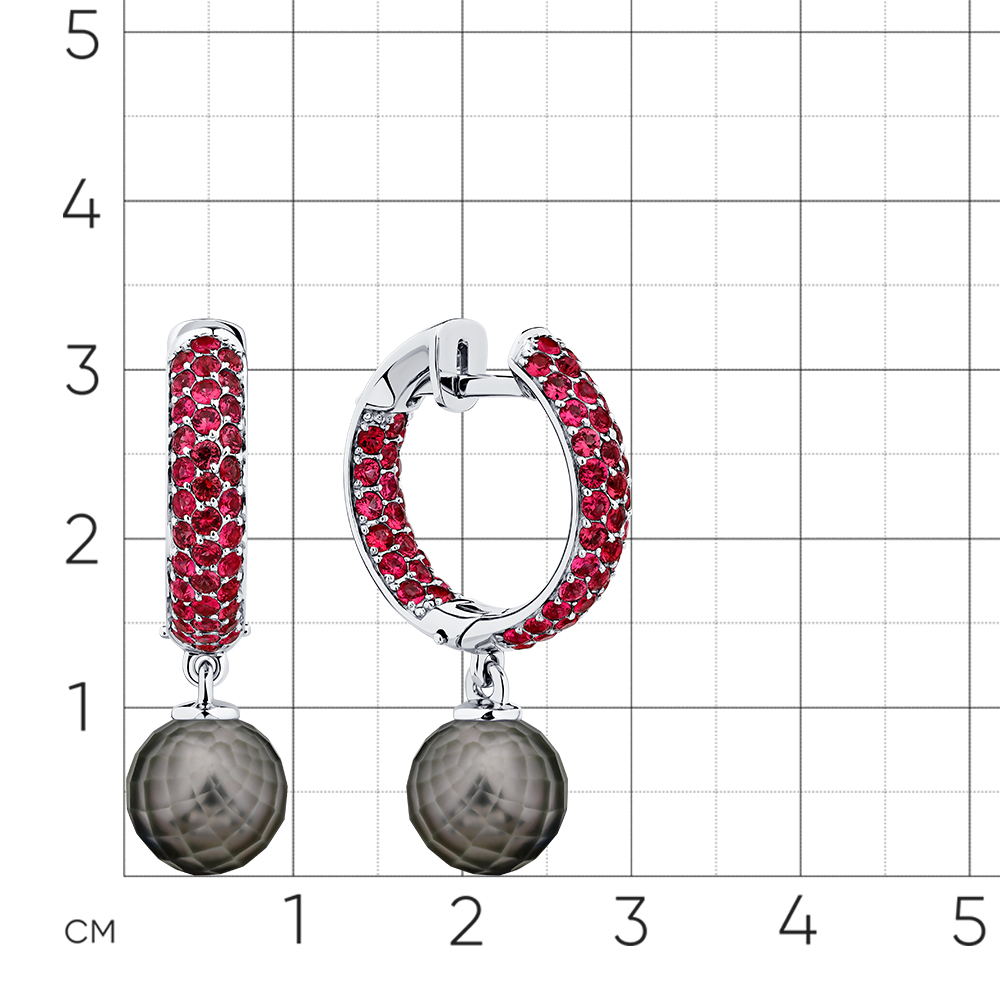 Серьги белое золото 585 пробы со вставками жемчуг культивированный морской, шпинель красный