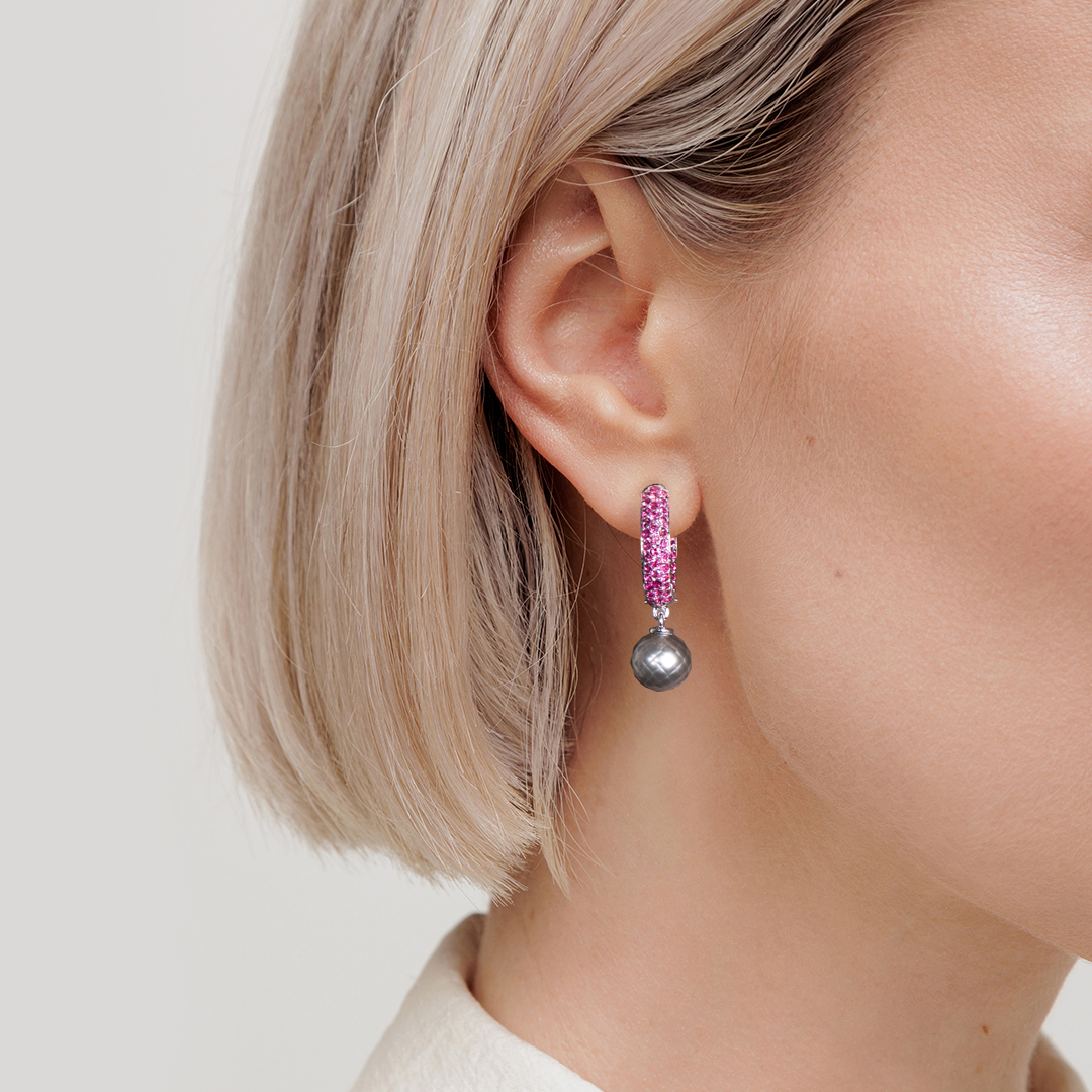 Серьги белое золото 585 пробы со вставками жемчуг культивированный морской, шпинель красный арт. 2-208859-00-55