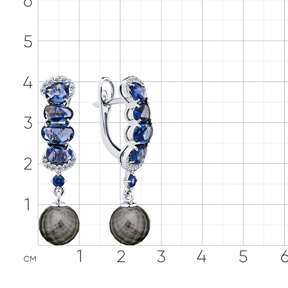 Серьги белое золото 585 пробы со вставками жемчуг культивированный морской, сапфир облагороженный голубой, сапфир облагороженный синий, бриллиант арт. 2-208866-00-55