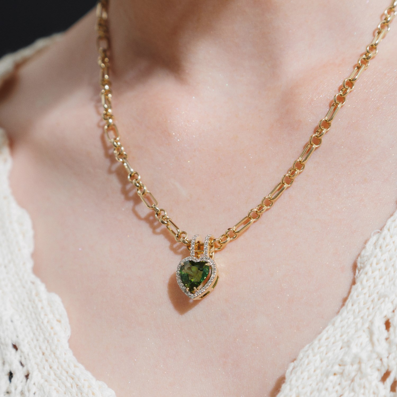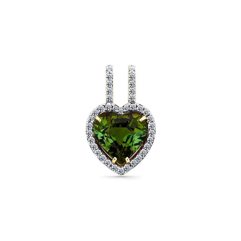 Подвеска жёлтое золото 585 пробы со вставками турмалин, бриллиант арт. 3-330070-00-18