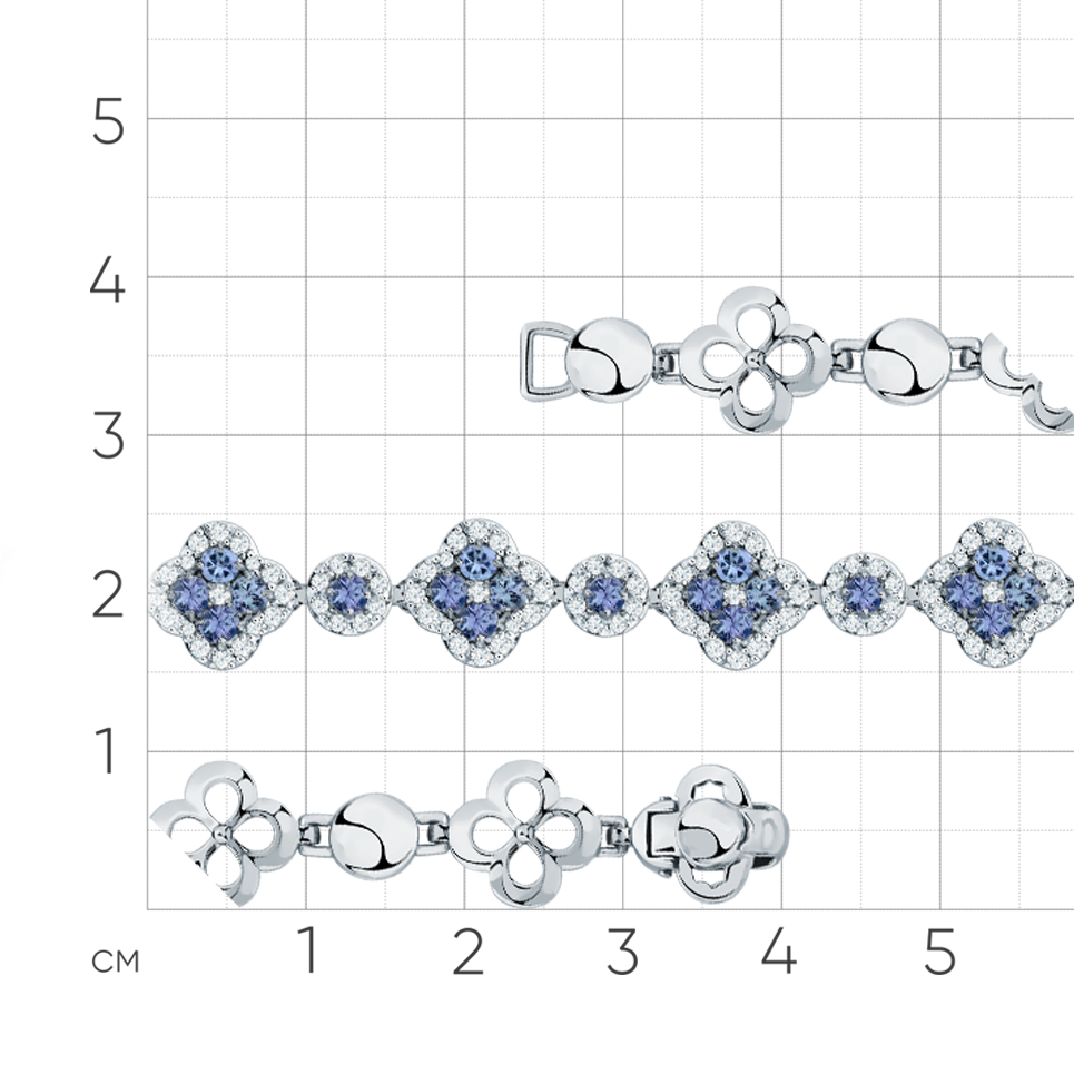 Браслет белое золото 585 пробы со вставками танзанит, бриллиант арт. 10-220483-00-31