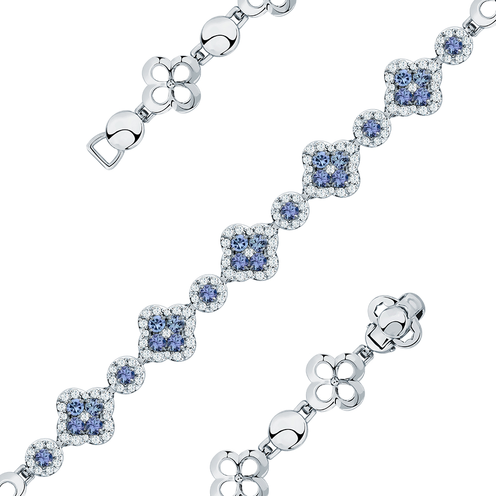 Браслет белое золото 585 пробы со вставками танзанит, бриллиант