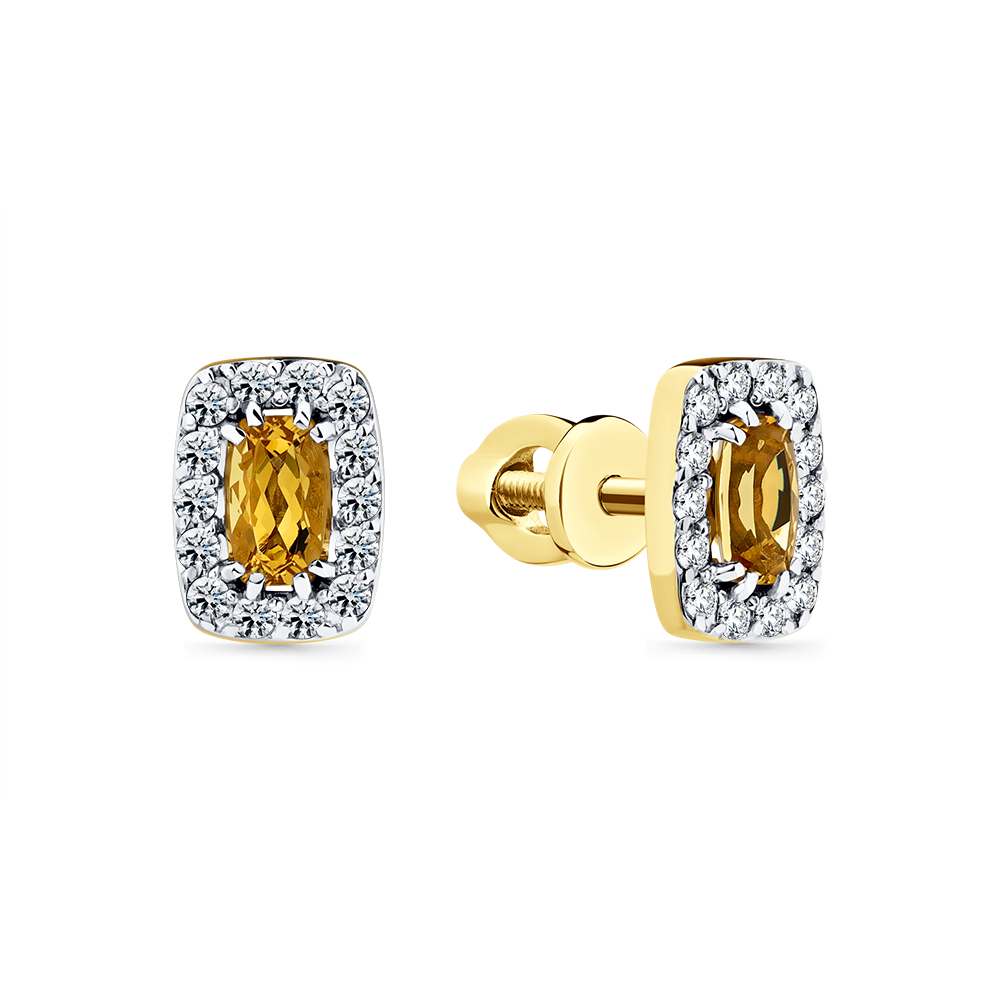 Серьги жёлтое золото 585 пробы со вставками берилл, бриллиант
