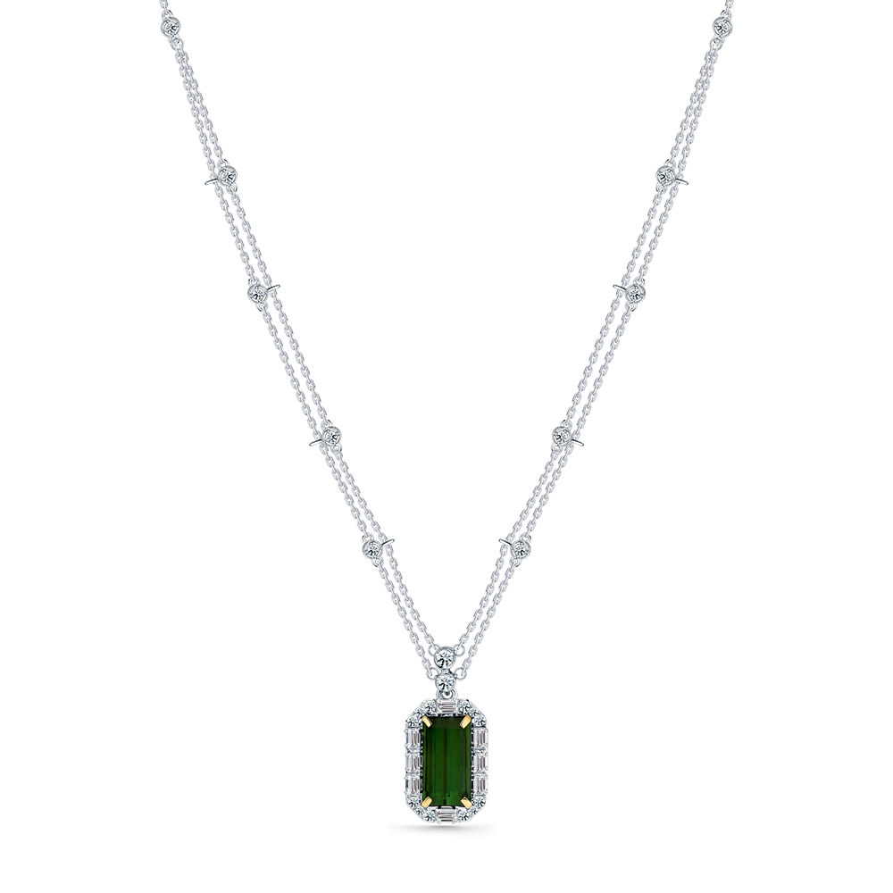 Колье жёлтое/белое золото 585 пробы со вставками турмалин, бриллиант арт. 6-560738-00-18