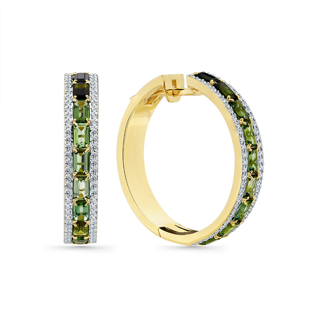Кольцо жёлтое золото 585 пробы со вставками турмалин мультиколор, бриллиант арт. 1-309077-00-60