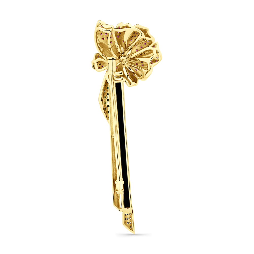 Брошь со вставками агат, рубин н., бриллиант зеленый, бриллиант черный, бриллиант арт. 7-370394-00-55