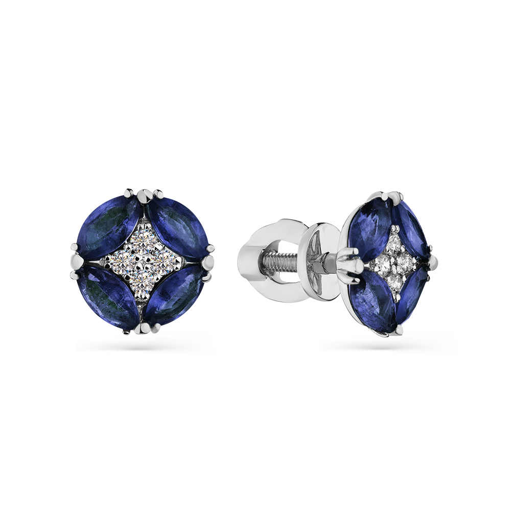 Подвеска белое золото 585 пробы со вставками сапфир н., бриллиант