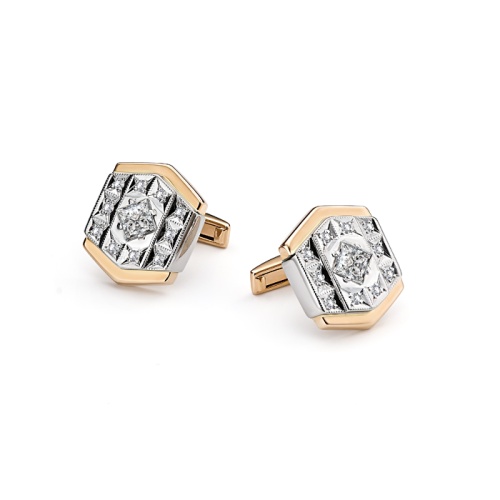 Запонки красное золото 585 пробы со вставкой бриллиант